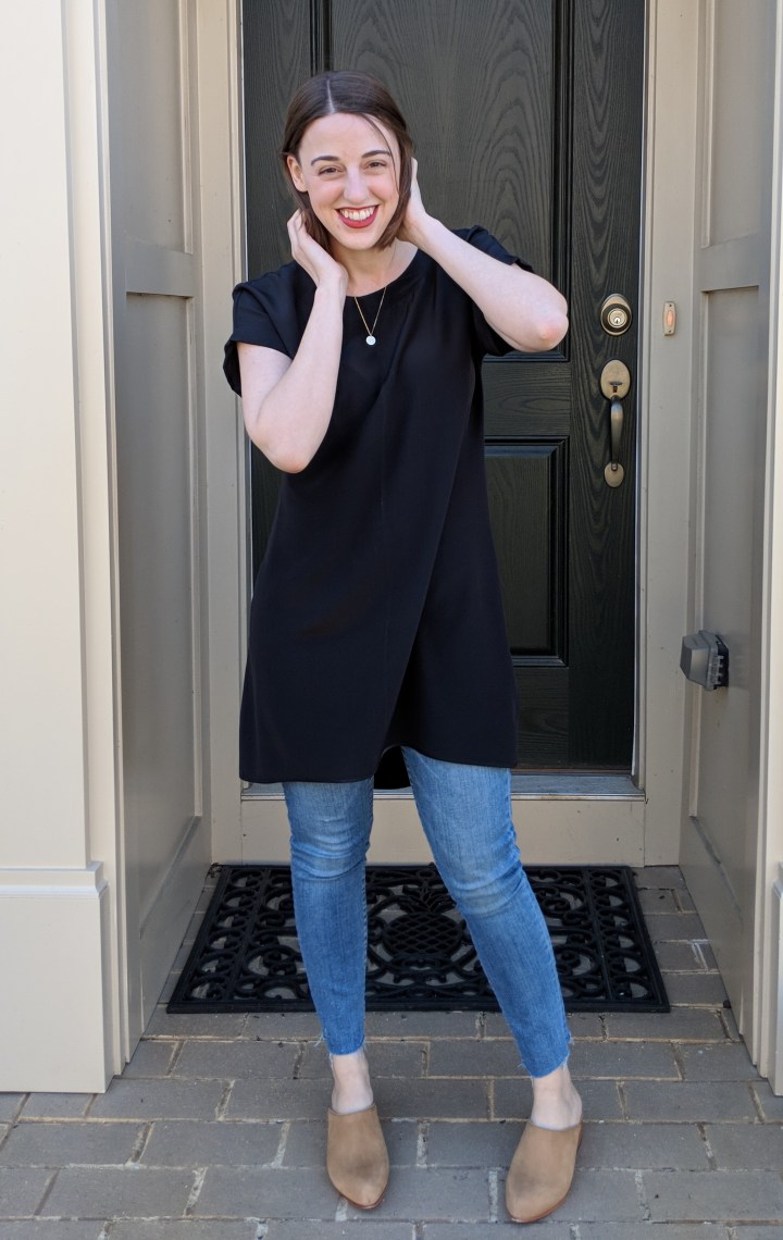 - My MVP items were my black silk tee dress from Everlane, and my new Nisolo Mariella Mules (yes, the ones I bought because everyone on Instagram was buying them – no regrets!). My secret 11th item was my pair of black silky sheer tights from Hanes. Once I stopped living in fantasy spring and just embraced the fact that I’d need to wear tights for this challenge, it was much easier.